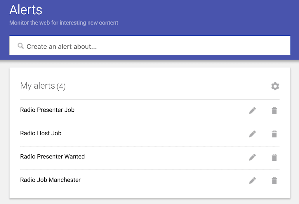 For specific news updates try using Google alerts. Setup keywords and get regular updates, for example, if you are looking for a job as a presenter add "Radio Presenter Job" or "Radio Host Job".